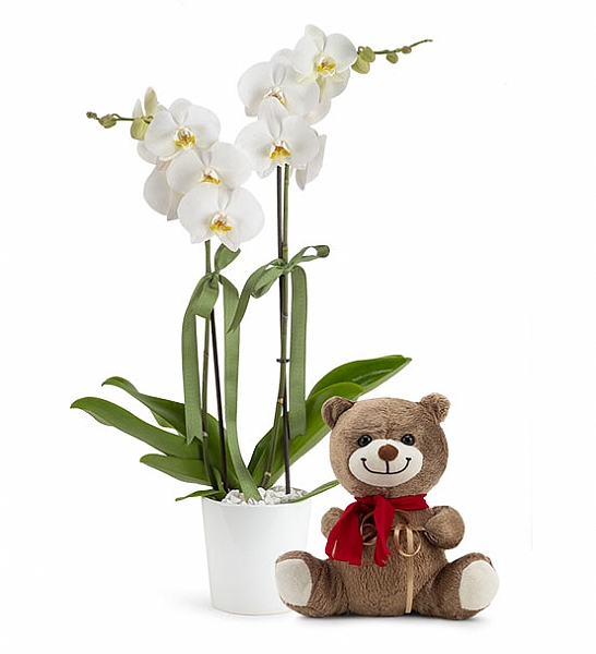 İthal Beyaz Orkide ve Peluş Ayıcık Kombini Müşterilerimiz Yoğun Talep Gösterdiği Ürünlerdendir.