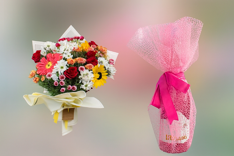 Not : Çiçeğin Etrafına Kullanılan Malzeme ve Simli Alkolsüz Şampanyanın Rengi Değişkenlik ve Farklılık Gösterebilir