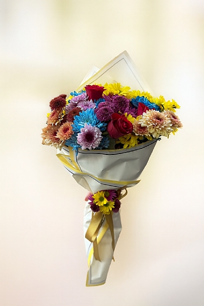 Rengarenk Kasımpatılar ile yapılmış olan KARILŞIK LUX buket.